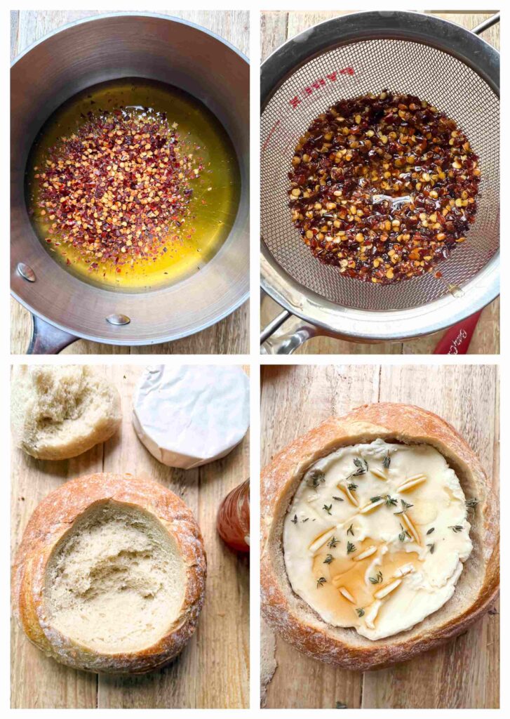 Hot Honey Baked Camembert in Bread Bowl